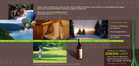 Professionell oder Individuell, Sie möchten gerne eine Reise in die Franche-Comté planen. Mit Erfahrung und Landeskenntnissen ist Green-Lady der ideale Ansprechpartner für Ihre Programmgestaltung. Für grosse Gruppen, kleine Gruppen sowie für Inividuelle und VIP.
